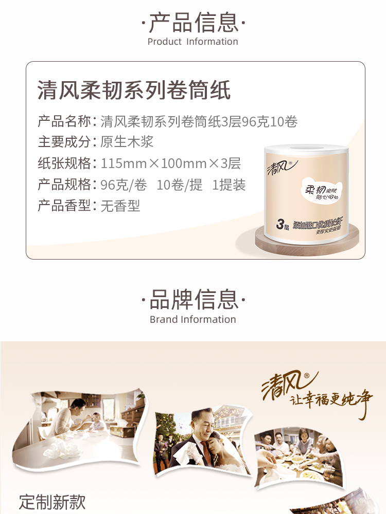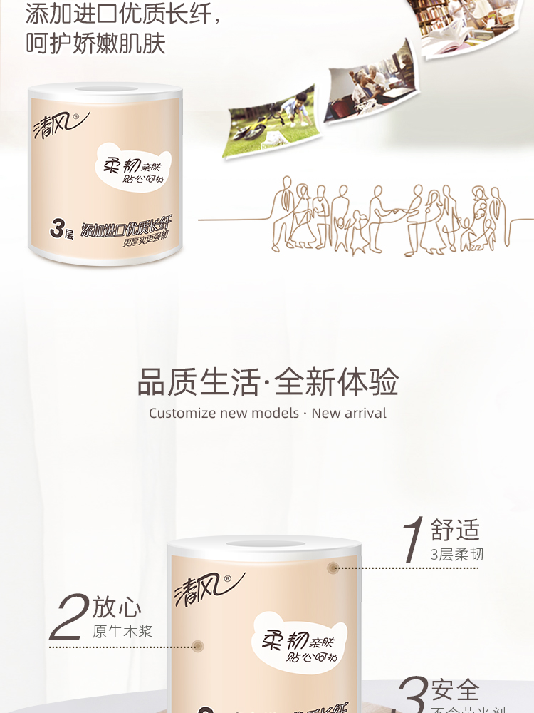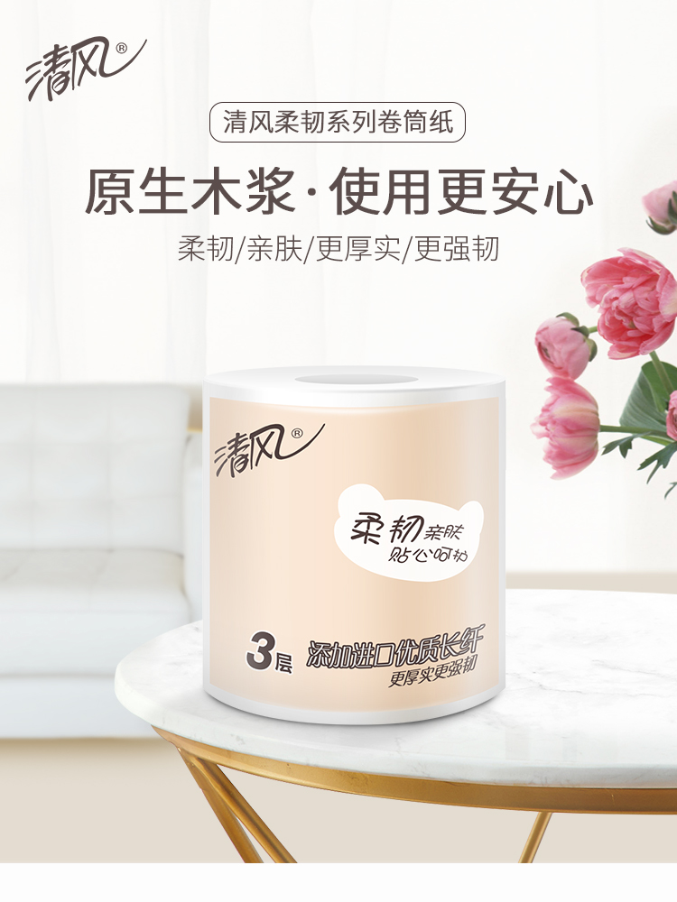 清风柔韧系列卷筒纸手纸